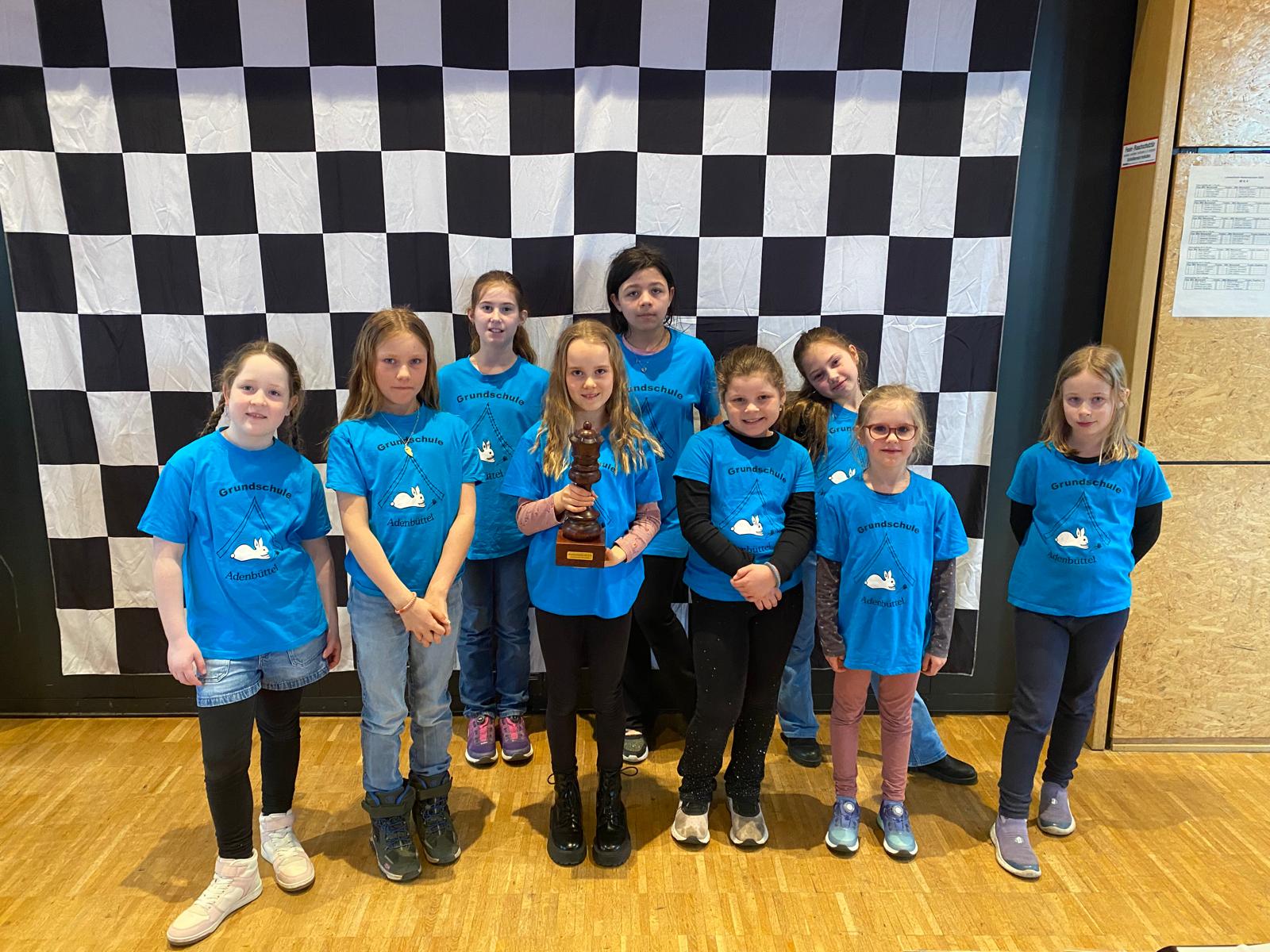 Nach über vier Stunden Schach standen die Sieger in den einzelnen Wettkampfklassen endlich fest. Sensationeller Weise belegte die Mädchenmannschaft 1 mit Emily, Lara (beide 4b), Greta G. (3b) und Greta (2b) den ersten Platz und qualifizierte sich dadurch für die Deutschen Meisterschaften in Düsseldorf… SUPER!